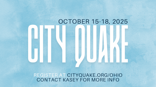 We have the opportunity as a Body to participate in a 3-day conference equipping us to better share our faith and invite others into a relationship with Jesus! Beginning Wed. 10/15, City Quake will be leading sessions on How to Share our Faith. Additionally, each day we will have opportunity to practice what we are learning by evangelizing in the Newark community. Tickets are $90 for all sessions, and the conference will be held at Family of Faith Church on Mt. Vernon Rd. in Newark. We are excited for this opportunity to not only meet and fellowship with members of area churches, but also grow in our confidence and ability to effectively share the Gospel in our community!